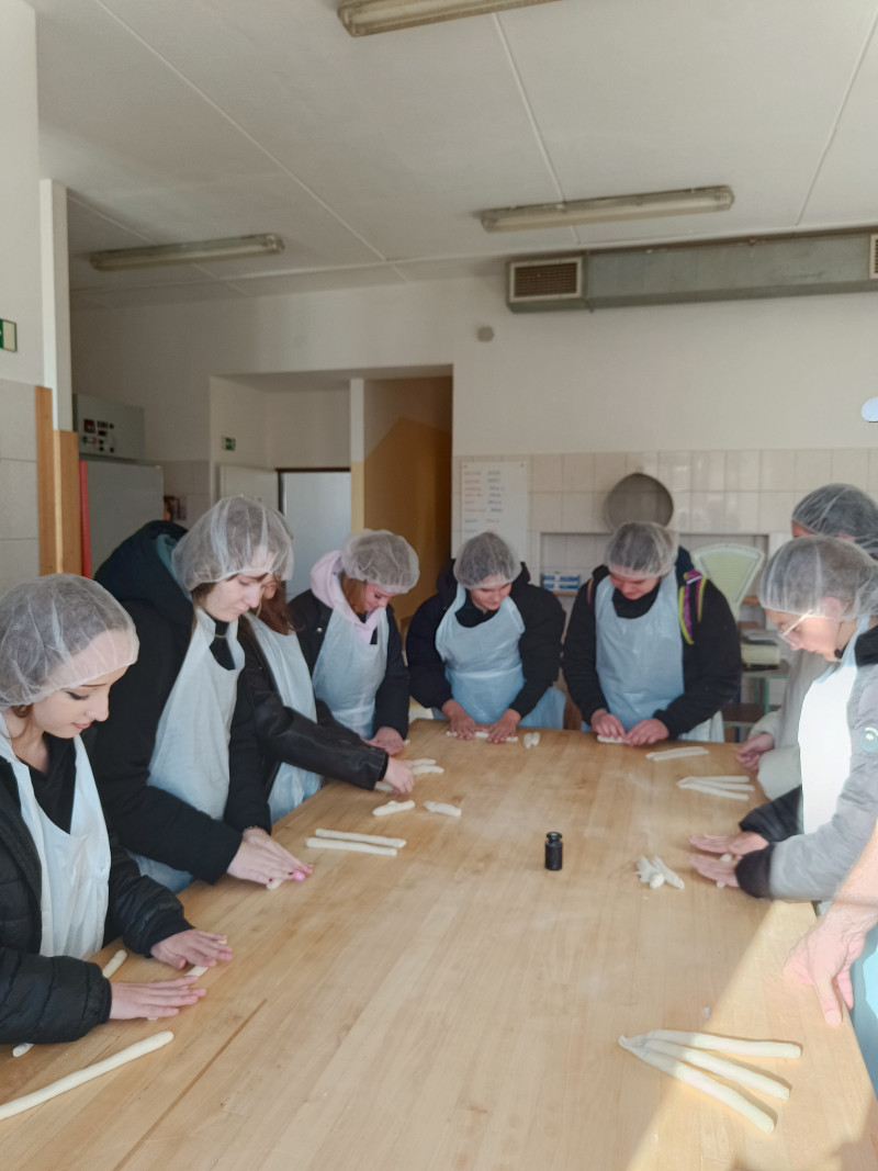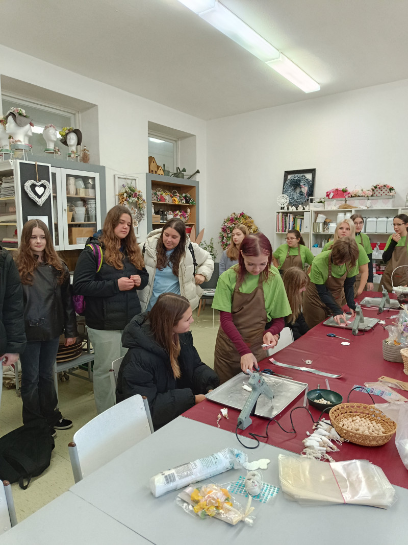V úterý 4. listopadu jsme se vydaly s žákyněmi 9. ročníků na „čumendu“ do prostor Střední hotelové školy v Kroměříži, která v rámci své prezentace láká žáky devátých ročníků ke studiu. Měly jsme možnost projít celou školu, doslova od sklepa až po půdu a vyzkoušet si na vlastní kůži něco málo z oborů, které se zde dají studovat. Zkusily jsme si vyrobit andílka, květinový náramek na ruku, svícen nebo uplést pletýnku, či uválet z těsta rohlík. Dostaly jsme možnost si nazdobit muffin a samozřejmě si ho také sníst. Pro masožravkyně byl k dispozici dokonce i skvělý „šnycl“. Naše putování jsme zakončily nealko drinkem, který jsme si umíchaly v jedné z odborných učeben školy. Potkaly jsme také mnoho našich bývalých žáků a žákyň, kteří na ZŠ najednou nedají dopustit. Patří k nejlepším ve svých oborech. Exkurzi jsme zakončily rozchodem na Velkém náměstí a domů jsme se vydaly každá po vlastní ose.
