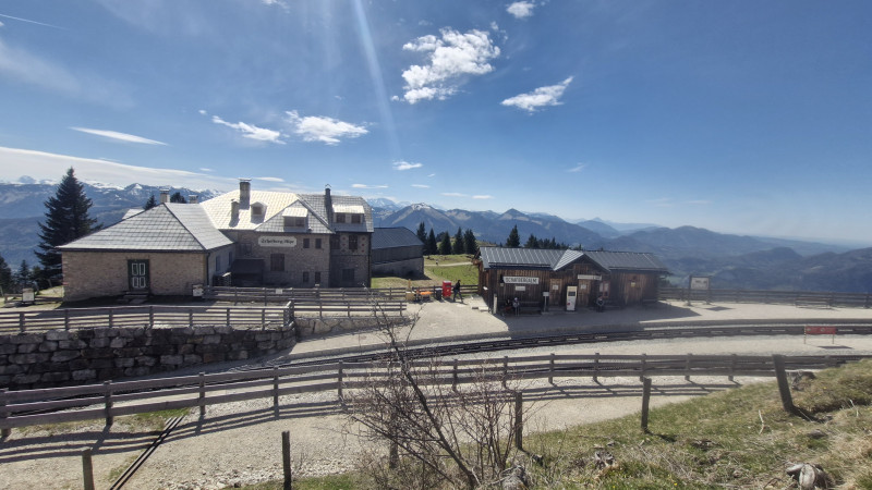 Malá přestávka, obchůdek, záchod a v pohodě pro lístky na další zdejší vyhlášenou atrakci – „zubačku“ z konce 19. století, která vede na horu Schafberg. Rozchod a časová rezerva se hodili, protože jsme asi 15 minut hledali, kdo si u paní průvodkyně nevyzvedl správný lístek. Na loď jeden, na „mašinku“ druhý, to dá přece rozum. Ale i tohle patří samozřejmě k výletu. Nasedli jsme do krásně červených vagónků a za půlhodinku nás zubačka „vytáhla“ o nějakých 700 výškových metrů na kopec. A další pecka programu. Alpská pastvina, dřevěná „chaloupka“ s minirestaurací – gulášovka, něco sladkého na zub a „etwas zum Trinken“. Ale to určitě nebylo to hlavní. Procházka nad hranicí lesa, pastviny, pozůstatky po „kravách milkách“ všude okolo, ale hlavně ta panoramata – jak říká klasik. Dole jezero a před námi alpské třítisícovky ještě pořád plné sněhu a ledovců. Hodina a něco s výhledy, které jsme si užili díky počasí jako ze „žurnálu“. Asi za hodinku a půl nás zubačka zavezla opět do údolí.