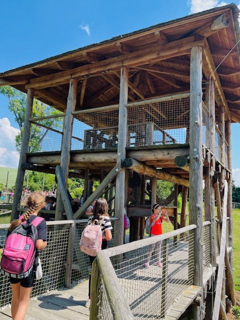 Dne 30.května se čtvrťáci vydali do minulosti prostřednictvím výletu do Archeoskanzenu Modrá. Naši první zastávkou se stalo významné poutní místo Velehrad, kde jsme obdivovali krásnou barokní baziliku a připomněli si Cyrila a Metoděje. Poté už jsme stanuli před opevněným velkomoravským hradištěm z dob 9.století. Objevovali jsme, jak asi žili lidé v 9.století na Velké Moravě. Ochotný pan průvodce nás provedl areálem a snažil se dětem zodpovědět všechny všetečné otázky. Nejvíce děti zaujal tehdejší jídelníček zpestřený lahůdkami jako pečený bobří ocas, vařené krysí maso a morčata pečená na ohni. Mnohé děti také zaujala volně pobíhající zvířata. V tomto areálu jsme navštívili i expozici Živá voda. Doslova jsme se ponořili do podvodního světa našich rybníků a nahlédli na život pod hladinou. Největší úspěch měl průhledný tunel a téměř dvoumetrové vyzy velké, které kolem nás kroužily. Výlet jsme zakončili procházkou po vyvýšené lávce ve výběhu praturů.