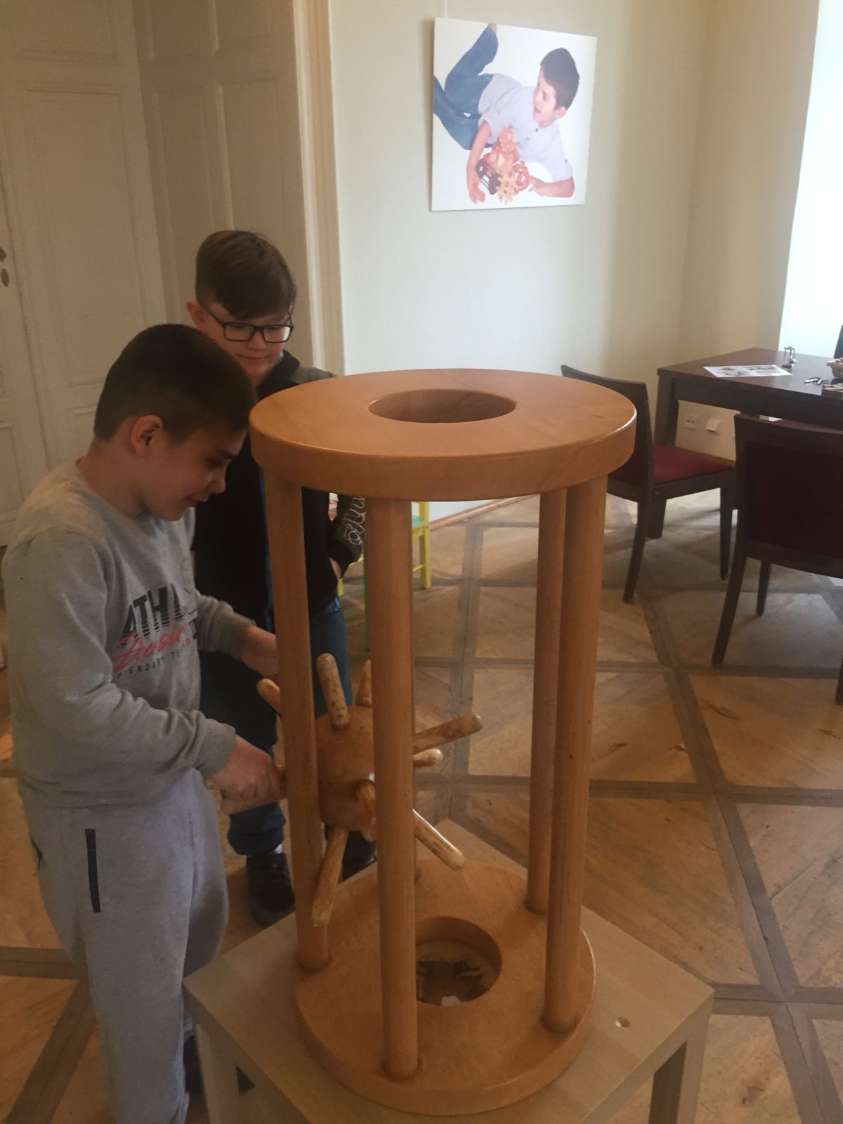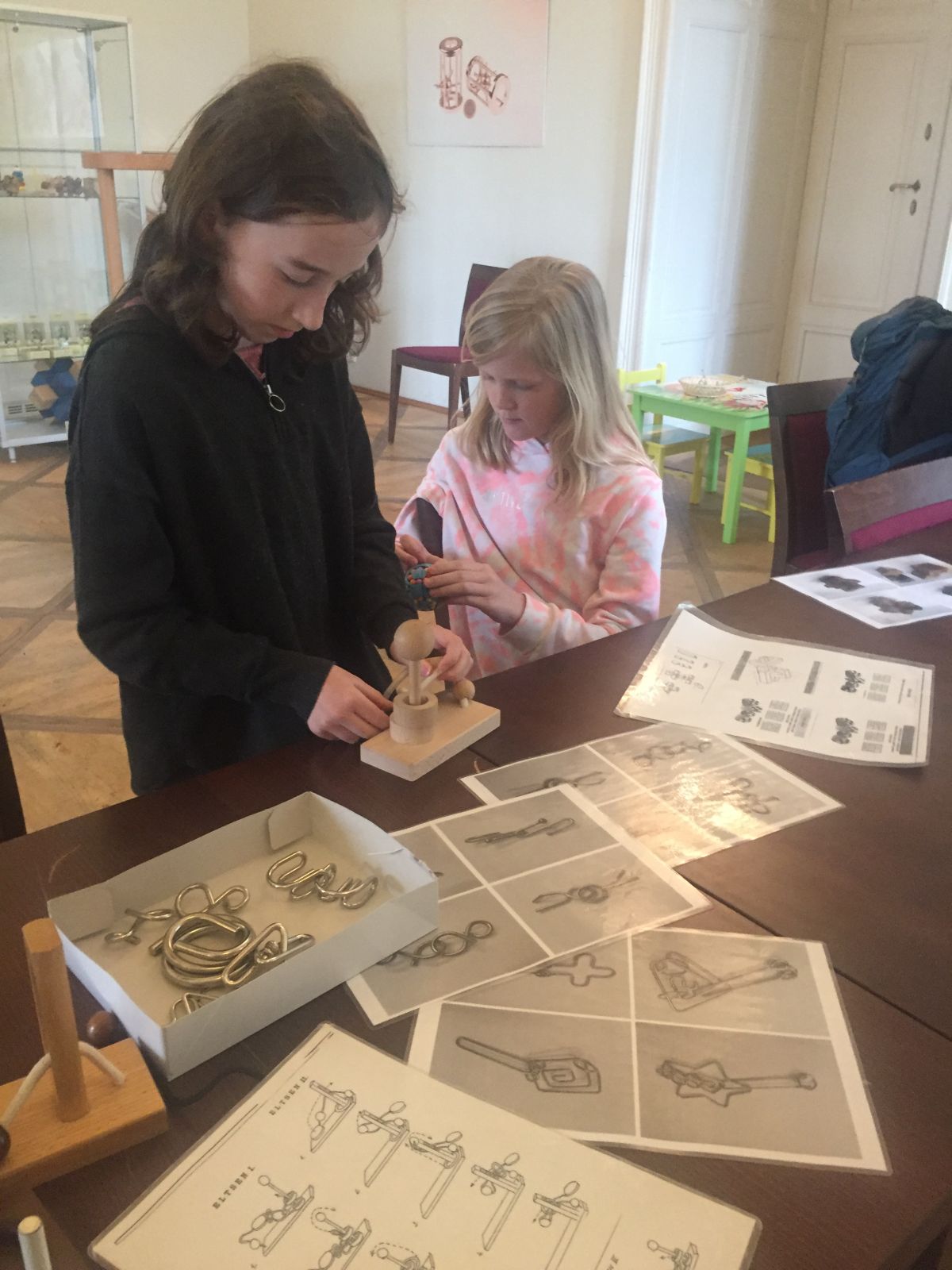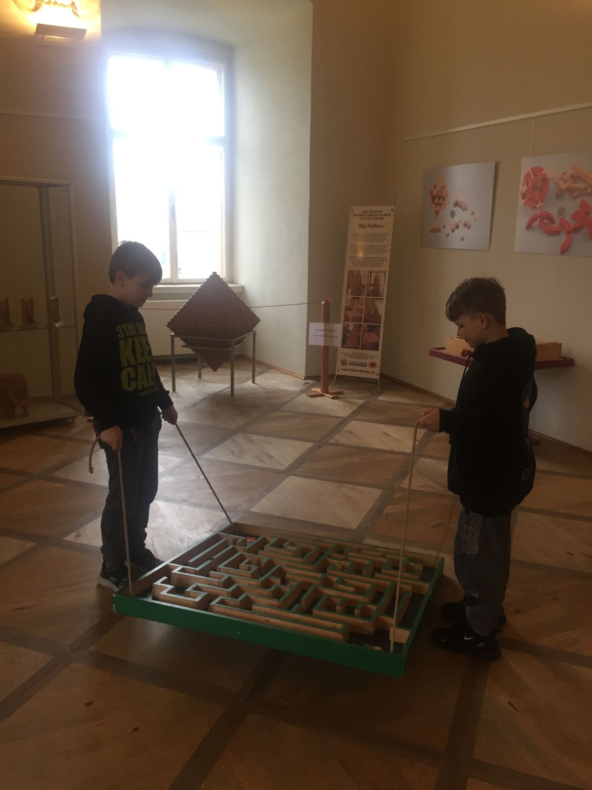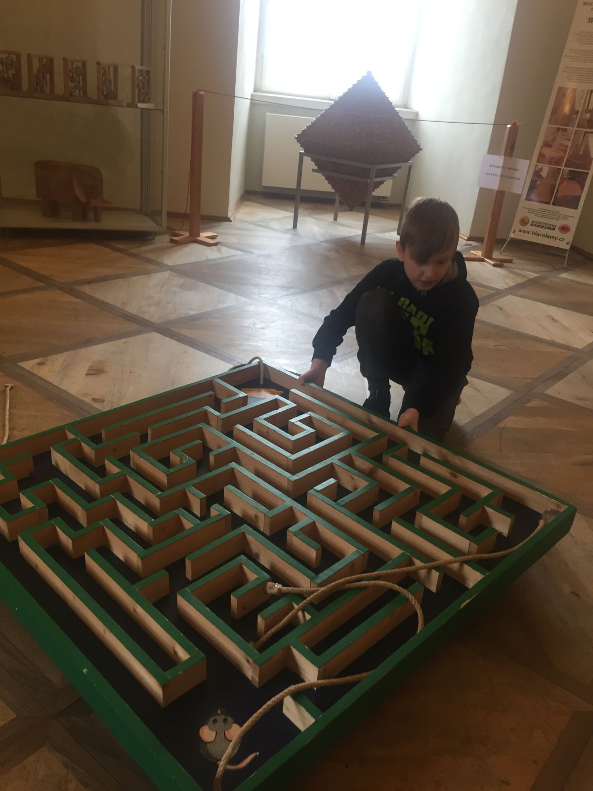 Ramsesova hvězda, Dürerův čtverec, mosty v Königsbergu, ježek v kleci, křížovky, Big Pelikan, bludiště…….. že vám to nic neříká? Nám zpočátku taky moc ne, ale po návštěvě úžasné výstavy hlavolamů v holešovském zámku už víme, o co jde. V několika hernách bylo připraveno velké množství skládaček, hádanek, rébusů a hlavolamů. Ani jsme nevěděli, do čeho se pustit nejdříve. Čekal na nás obří Ježek v kleci, známý z knihy J. Foglara, kterou právě čteme ve škole, velké bludiště s Minotaurem, molitanové bloky, ze kterých jsme měli sestavit gotický oblouk, stavebnice, ze které měla vzniknout pyramida nebo velký hrad, ale i menší hlavolamy jako je třeba Rubikova kostka, kovové, magnetické i provázkové hlavolamy. Prohlédli jsme si největší evropský hlavolam i úplně první historickou křížovku od liverpoolského novináře, která se rychle stala senzací a rozvinula se do nejrůznějších forem, jaké dnes známe. A když už nás brněla hlava z hlavolamů, mohli jsme si jen tak pohrát nebo stavět z kostek naše vlastní výtvory. A ty také nebyly zrovna nejmenší! 4.A